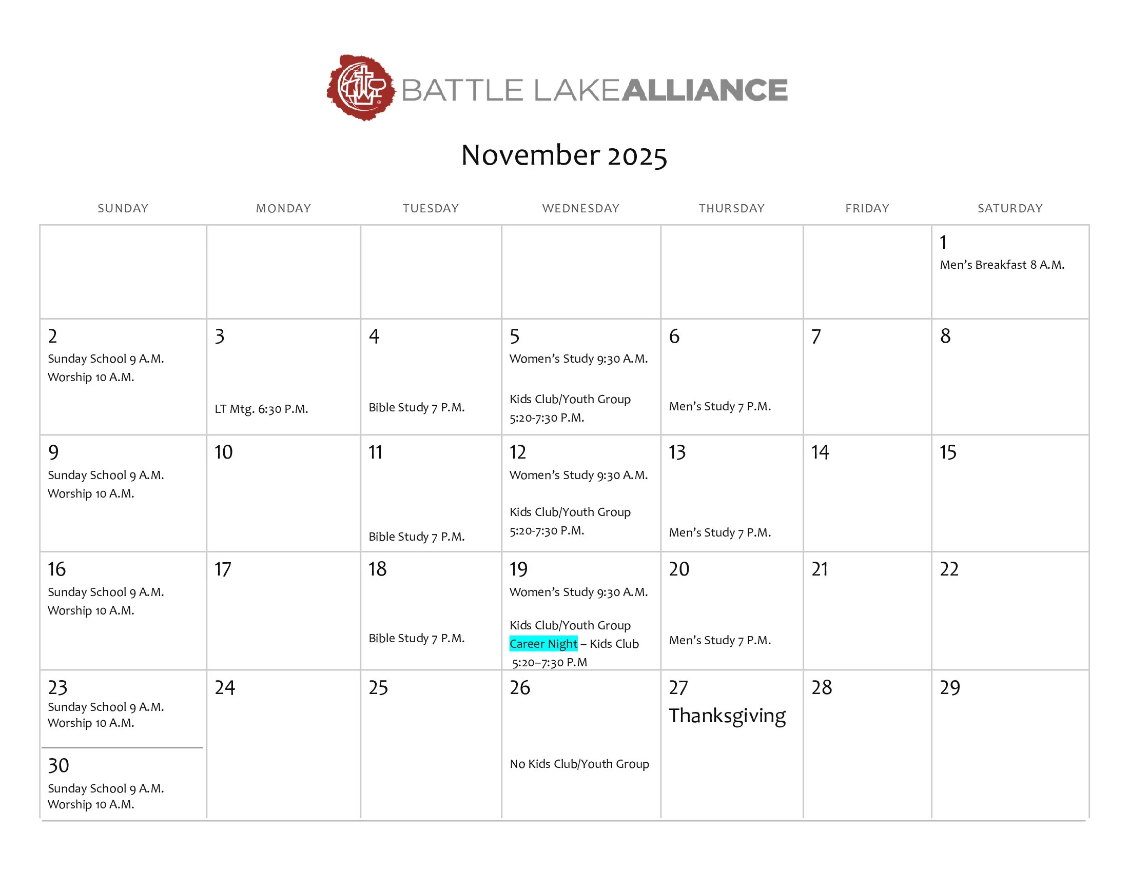 Activities and Events of Battle Lake Alliance Scheduled for November 2025