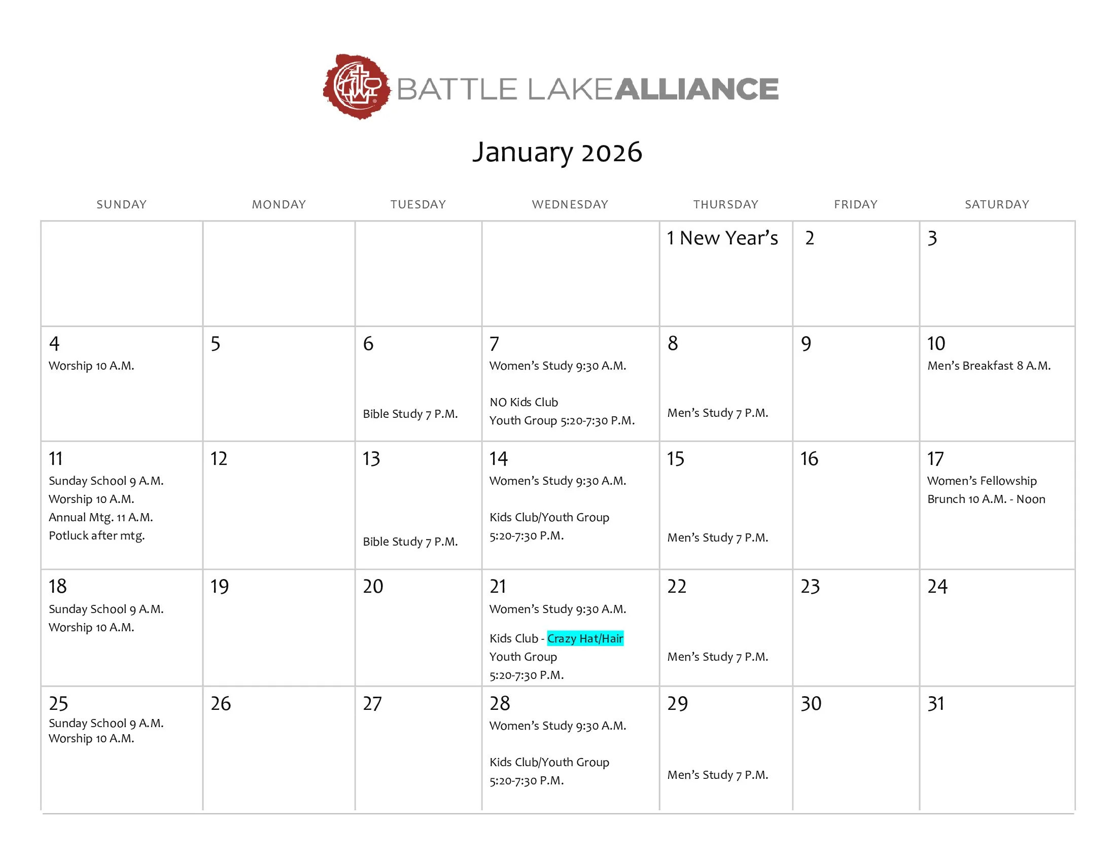 Activities and Events of Battle Lake Alliance Scheduled for January 2026