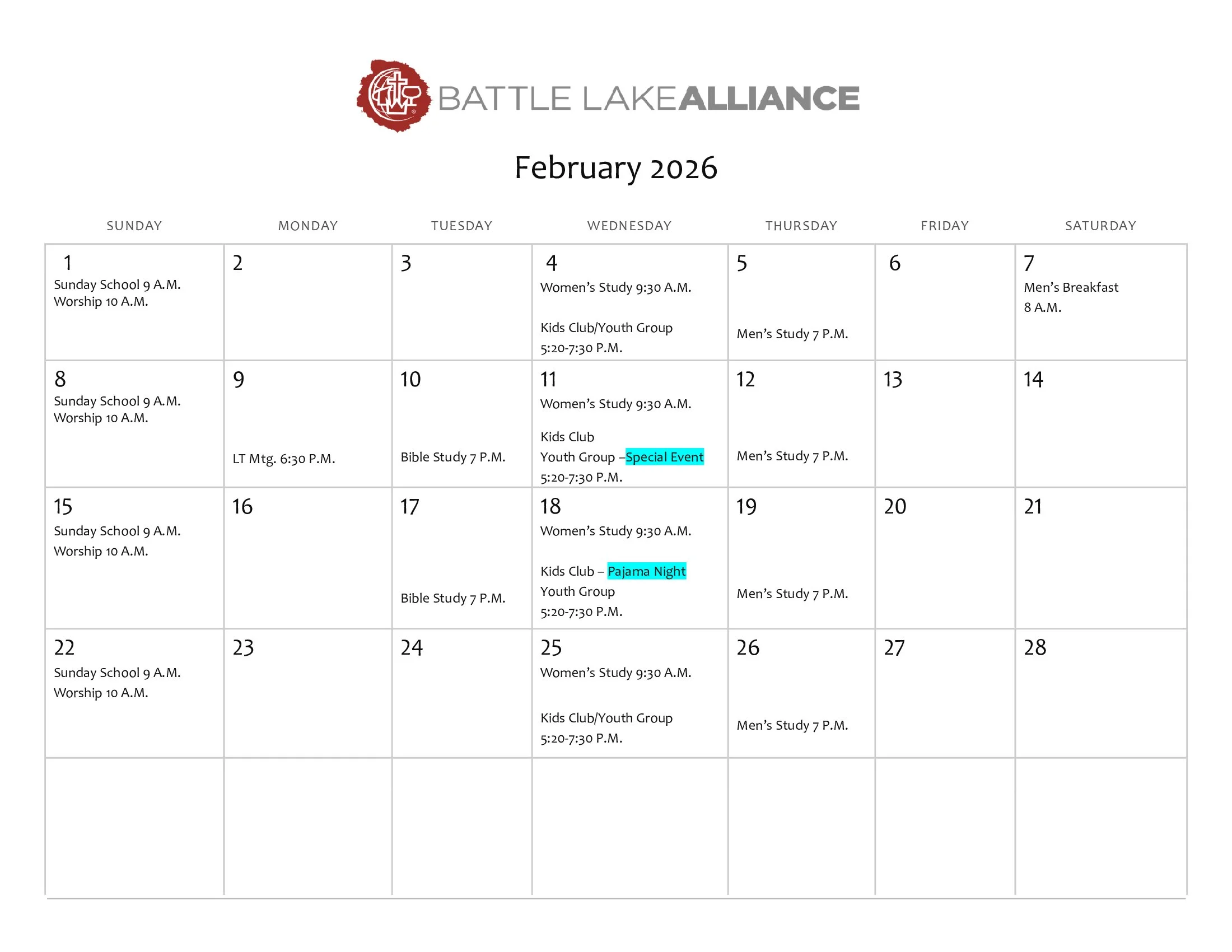 Activities and Events of Battle Lake Alliance Scheduled for February 2026